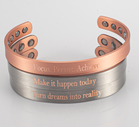 Energinox אישית תכשיטים אישית מסר מוטיבציה מעורר השראה לוגו לייזר חריטה צמיד חרוט נחושת
